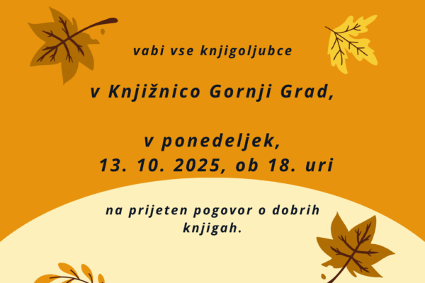 Vabljeni na prvo srečanje Gornjegrajskega bralnega kluba v tej sezoni, bi bo v ponedeljek, 13. oktobra 2025, ob 18. uri v Knjižnici Gornji Grad. Beseda bo tekla o knjigah, ki ...