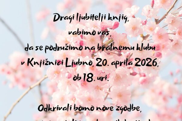 📚Vabimo vas, da se nam pridružite na Bralnem klubu Ljubno, v ponedeljek, 20. aprila 2026, ob 18. uri v prostorih Knjižnice Ljubno. 📚 Pogovarjali se bomo o novostih s knjižnega ...