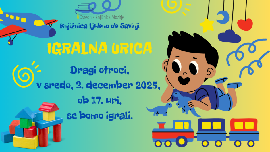 🧩 🚜 Dragi otroci, v sredo 3. decembra 2025, ob 17. uri, se bomo v Knjižnici Ljubno skupaj igrali. 🎲🧩🚗