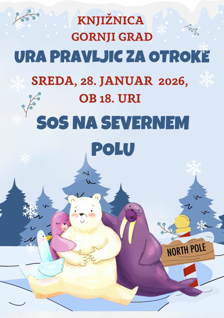 ❄️  ❄️  Dragi pravljičarji, vabljeni na uro pravljic v Knjižnico Gornji Grad!